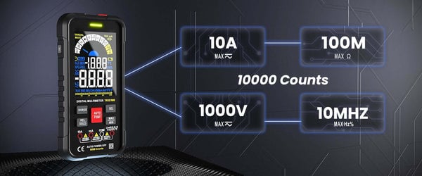 Multiple Functions: Raydexlights digital multimeter RD116 can accurately measure AC/DC voltage, AC/DC current, and 10A current, and can also be used to test continuity, capacitance, frequency, duty cycle, resistance, diode, temperature, NCV, and live wire. With this smart digital voltmeter, you can solve industrial, vehicle, and household electrical problems.